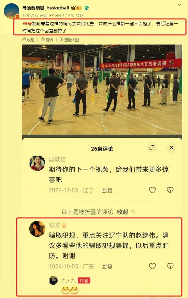 而且,99号裁判员胡廷胜还被网友扒出与某队球迷互动密切的证据。不过他在辽京大战结束后可能意识到大家发现了,所以赛后第一时间删除了回复。难免让人觉得他心里有鬼,干了什么见不得人的事。